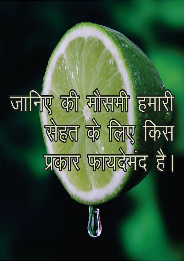 मौसमी सेहत के लिए रामबाण का काम करती है | एंटी ऑक्सीडेंट गुण के कारण हर मौसम में इसका सेवन लाभदायक रहता है | इसमें मौजूद पोटेशियम, फोलिक एसिड, कैल्शियम, कोलेस्ट्रॉल के स्तर तथा हाई ब्लड प्रेशर को नियंत्रित रखता है | विटामिन ए, बी, सी रक्त में सफेद कोशिकाओं को बढ़ाता है | मौसमी आयरन को भी बढ़ाने में सहायक रहती है | कफ को पतला करके बाहर निकालती है इसके सेवन से कब्ज, गैस, अपाचे जैसी पेट की बीमारियां तथा मूत्र विकार को दूर करती है | सर्दी जुकाम में, पेट खराब होने पर कम मात्रा में लेने से तुरंत राहत मिलती है | रोजाना खाने से वजन घटाने में मदद मिलती है | जूस पीने के बजाए सीधे कच्चा खाने से अधिक लाभ मिलता है |